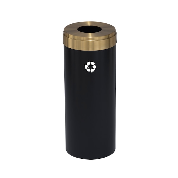 12 gal Round Recycling Bin, Satin Black/Satin Brass