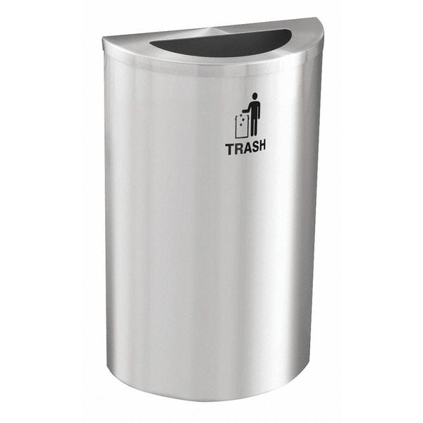 14 gal Half-Round Recycling Bin, Open Top, Satin Aluminum, 1 Openings