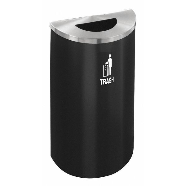 14 gal Half-Round Recycling Bin, Open Top, Satin Black/Satin Aluminum, 1 Openings