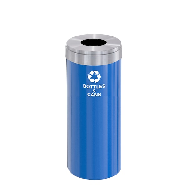 15 gal Round Recycling Bin, Blue/Satin Aluminum