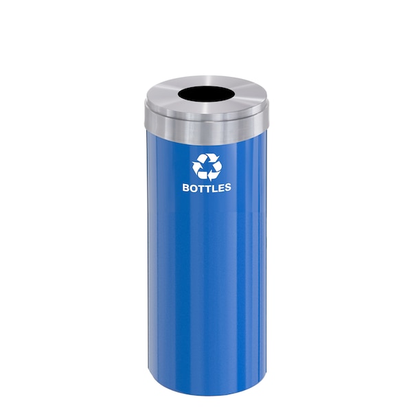 15 gal Round Recycling Bin, Blue/Satin Aluminum
