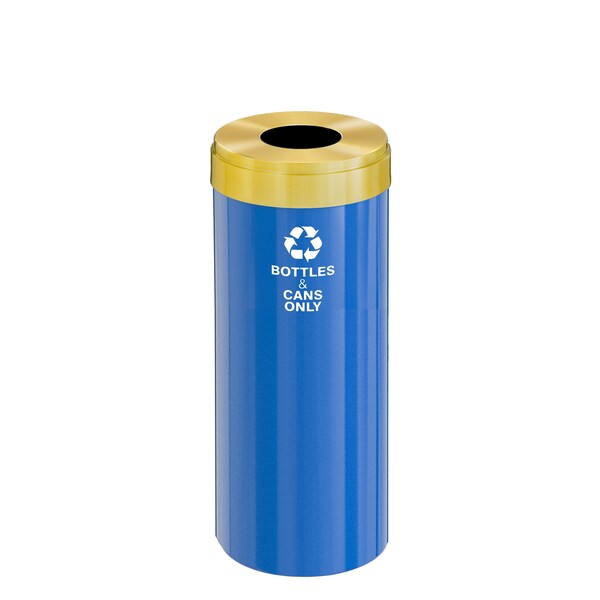 15 gal Round Recycling Bin, Blue/Satin Brass
