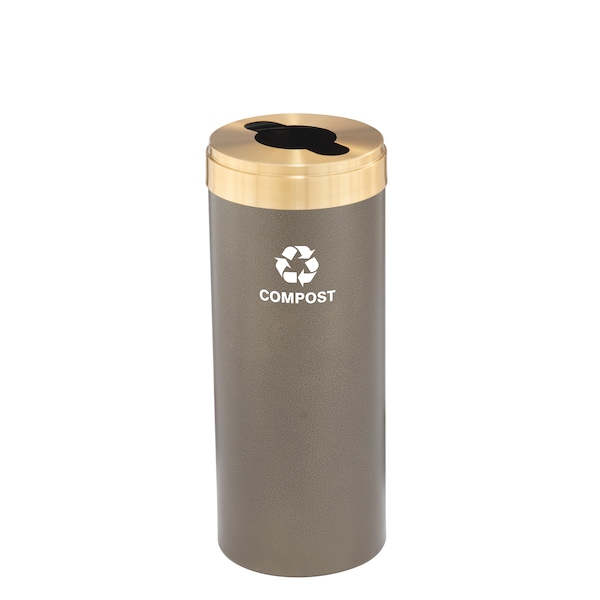 15 gal Round Recycling Bin, Bronze Vein/Satin Brass