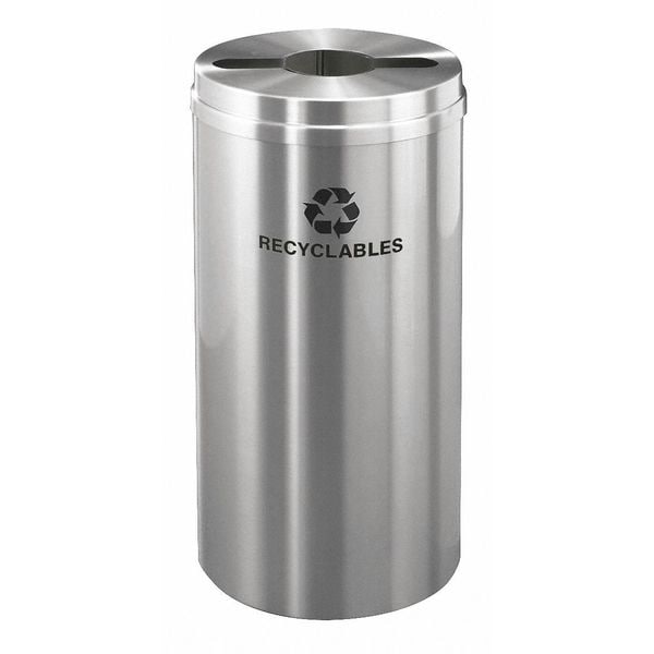 15 gal Round Recycling Bin, Open Top, Satin Aluminum, 1 Openings