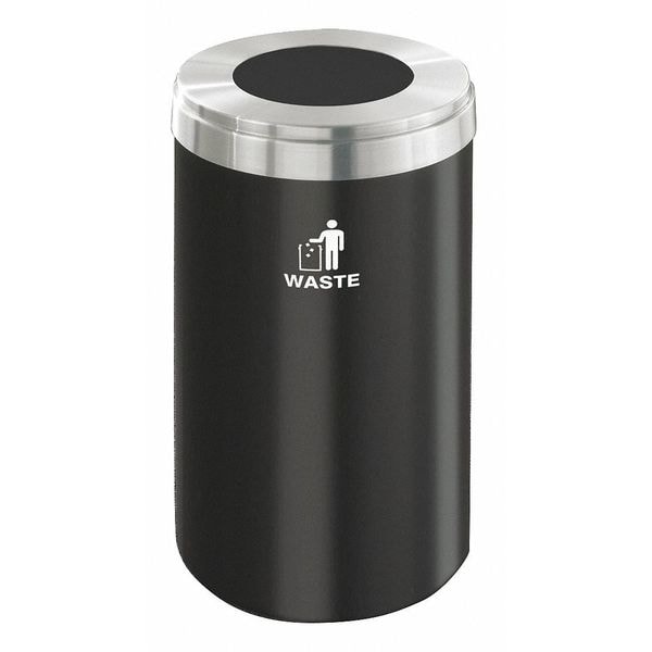 15 gal Round Recycling Bin, Open Top, Satin Black/Satin Aluminum, 1 Openings