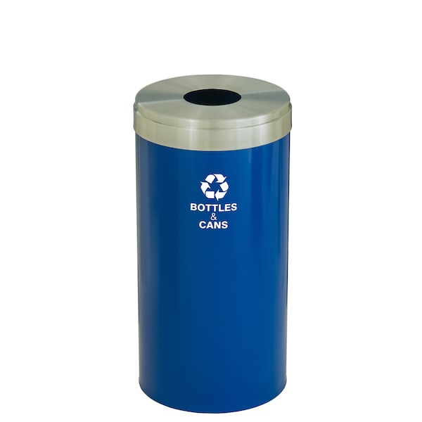 16 gal Round Recycling Bin, Blue/Satin Aluminum