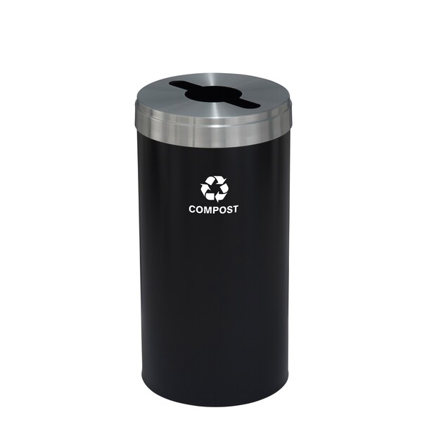 16 gal Round Recycling Bin, Satin Black/Satin Aluminum