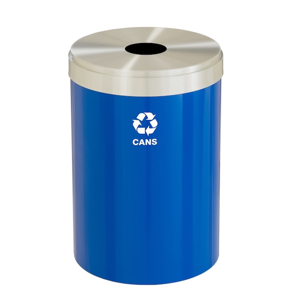 33 gal Round Recycling Bin, Blue/Satin Aluminum