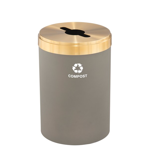 33 gal Round Recycling Bin, Nickel/Satin Brass