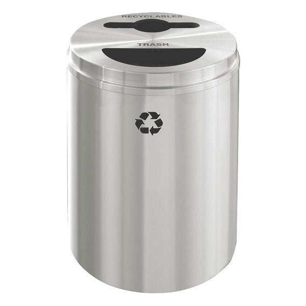 33 gal Round Recycling Bin, Open Top, Satin Aluminum, Aluminum, 2 Openings