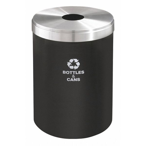 33 gal Round Recycling Bin, Open Top, Satin Black/Satin Aluminum, 1 Openings