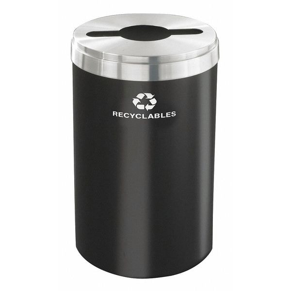 33 gal Round Recycling Bin, Open Top, Satin Black/Satin Aluminum, 1 Openings