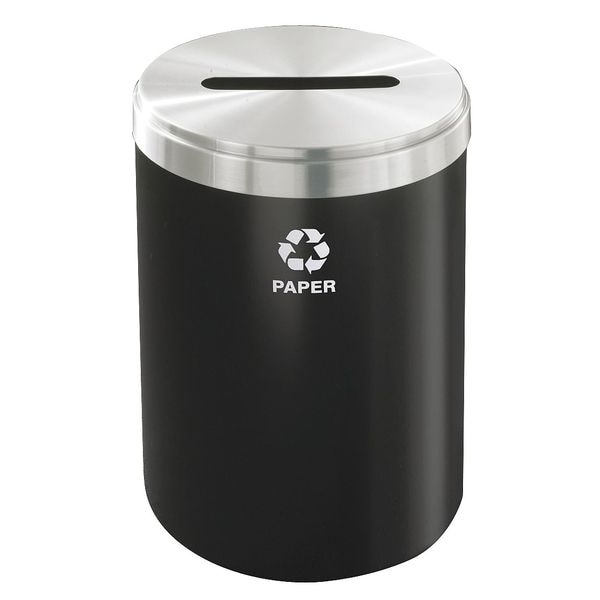 33 gal Round Recycling Bin, Open Top, Satin Black/Satin Aluminum, Paper, 1 Openings
