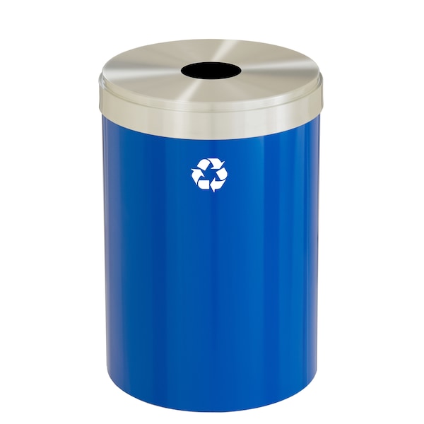 41 gal Round Recycling Bin, Blue/Satin Aluminum