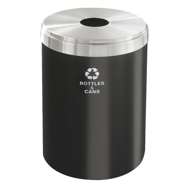 41 gal Round Recycling Bin, Open Top, Satin Black/Satin Aluminum, Steel, 1 Openings
