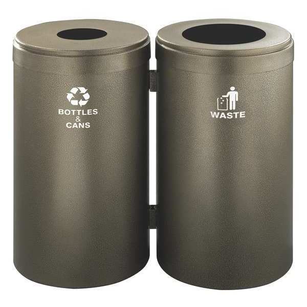 46 gal Round Recycling Bin, Open Top, Bronze Vein, Steel, 2 Openings