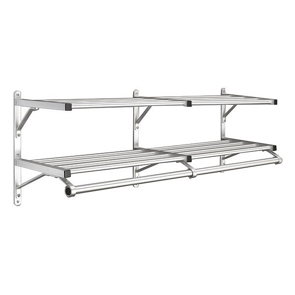 Coat Rack, 2 Shelves, 48 In W, Satin Alum