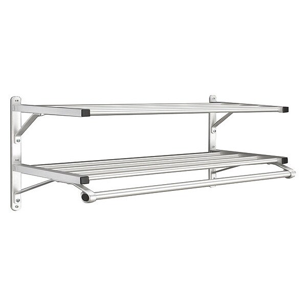 Coat Rack, 2 Shelves, 60 In W, Satin Alum