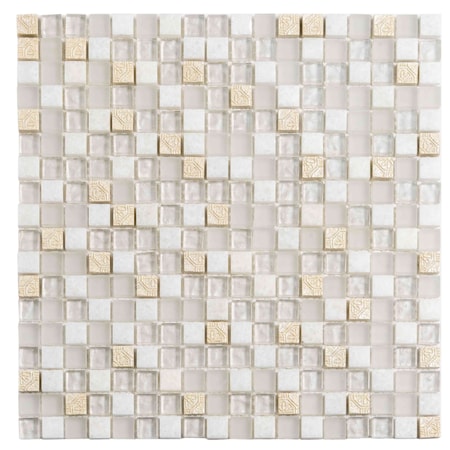 Beige 11.7 in x 11.7 in Glass, Resin Polished Floor and Wall Mosaic Tile 9.51 sqft/case, 10PK