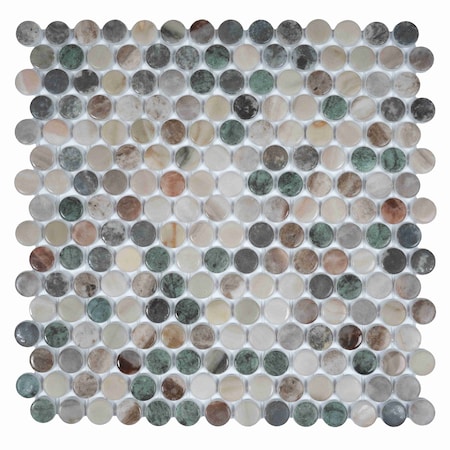 Lucenza 12x12 in. Green Beige Matte Recycled Glass Penny Round Mosaic Tile (10.56 sq ft/case) 12PK