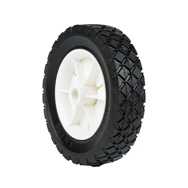 6" Plastic Wheel, 6" x 1.50" plastic wheel, For use on walk-behind mowers and small carts, 1/2" diameter offset hub, 1-3/8" hub length, 1/2" nylon bearing, Diamond tread, 35 lb. load rating.