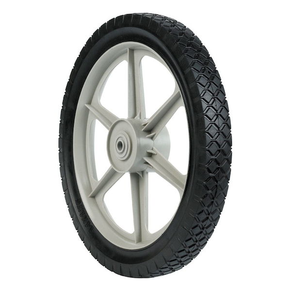 14" Plastic Wheel, 14" x 1.75" plastic wheel, 1/2" diameter offset hub, 2-1/2" hub length, 50 lb. load rating, 1/2" nylon bearing, Diamond tread" * *