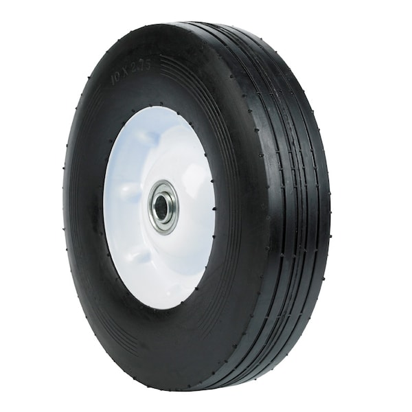 10" Steel Wheel, 10" x 2.75", 5/8" diameter centered hub, 1-7/8" hub length, 175 lb. load rating, 5/8" ball bearing, Ribbed tread, *