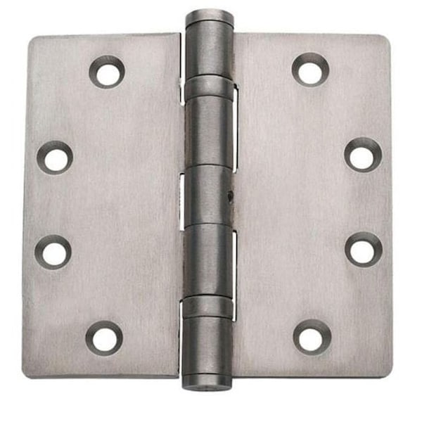 This model of the Global Door Controls 4.5 in. x 4 in. ball bearing non-removable pin stainless steel hinges has 5/32 in. radius corners and comes in a satin stainless steel finish. The hinges is classified as a heavy duty solid stainless steel commercial grade door hinges. For use with metal or wood doors. Packaged with both wood and machine screws.
