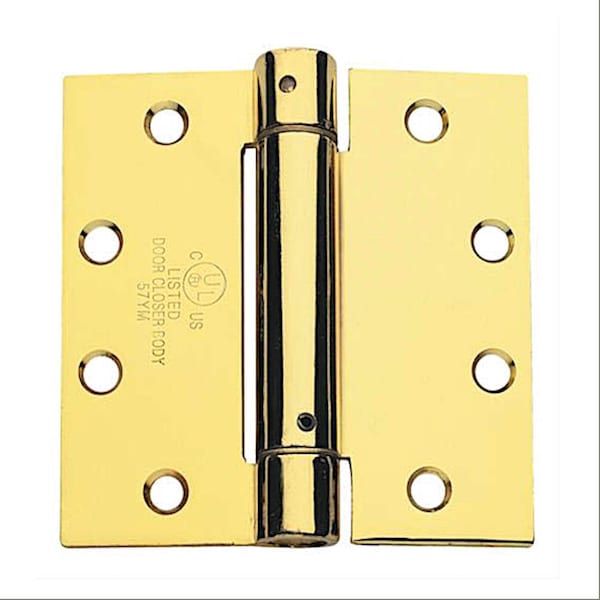 4.5 in. x 4 in. Full Mortise Spring Hinge in Bright Brass
