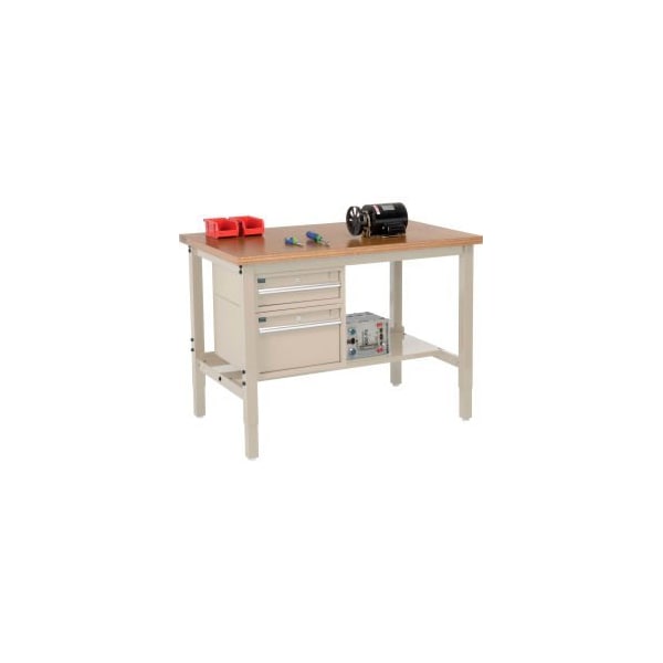 48 x 30 Production Workbench - Shop Top Square Edge - Drawers Shelf - Tan
