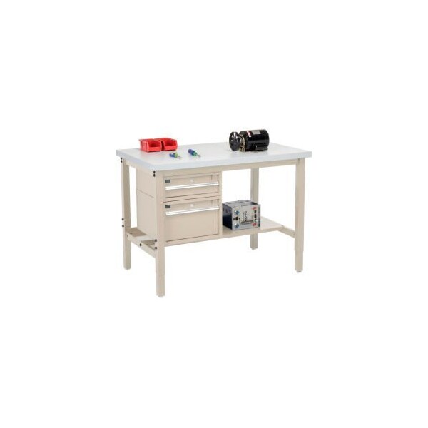 48 x 36 Production Workbench - Laminate Square Edge - Drawers Shelf - Tan