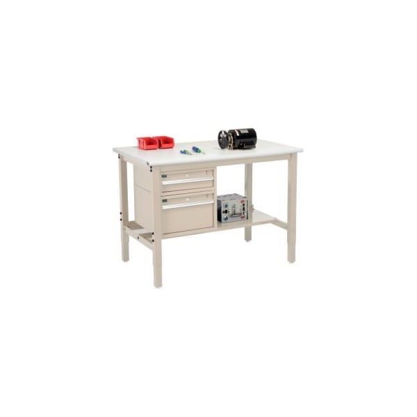 48"W x 30"D Production Workbench - ESD Safety Edge - Drawers Shelf - Tan