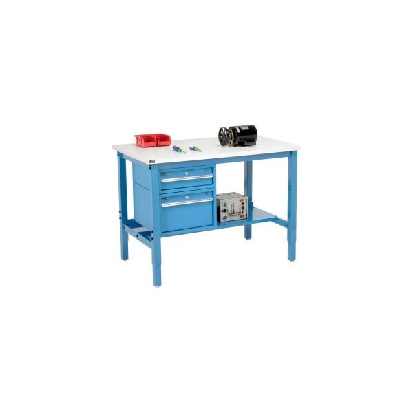 48"W x 36"D Production Workbench - ESD Square Edge - Drawers Shelf - Blue