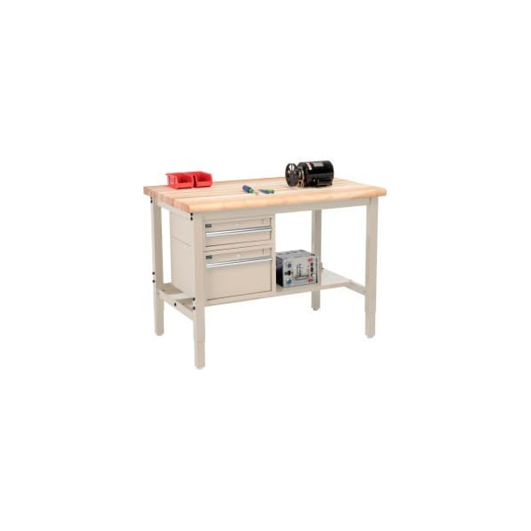 48"W x 36"D Production Workbench - Maple Safety Edge - Drawers Shelf - Tan