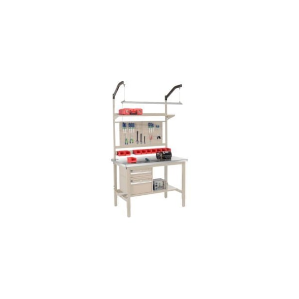 48x30 Production Workbench - Stainless Steel Square Edge Complete Bench Tan
