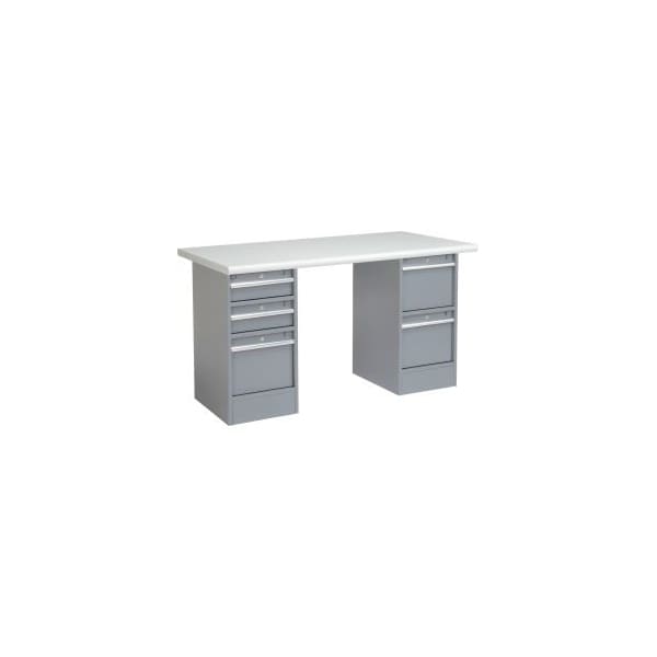 60 x 30 Pedestal Workbench - 5 Drawers, Plastic Laminate Safety Edge - Gray