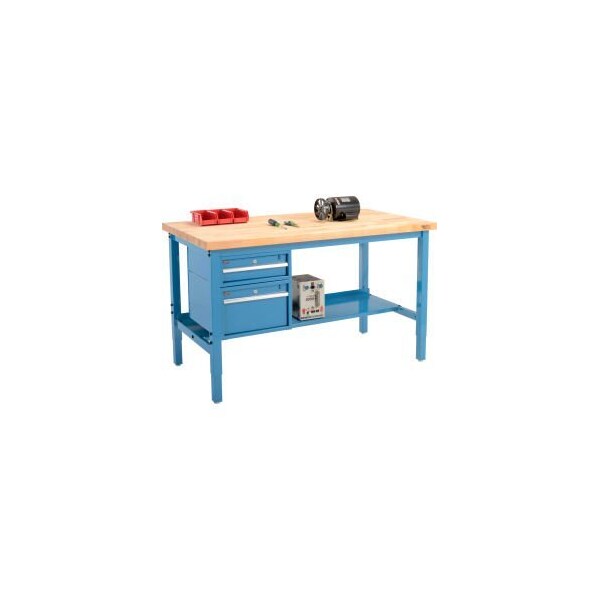 60 x 36 Production Workbench - Birch Square Edge - Drawers Shelf - Blue