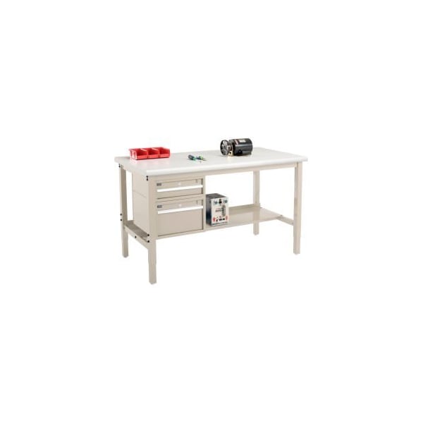 60 x 36 Production Workbench - Laminate Safety Edge - Drawers Shelf - Tan