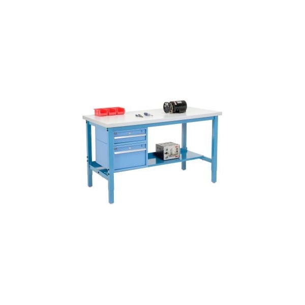 60 x 36 Production Workbench - Laminate Square Edge - Drawers Shelf - Blue