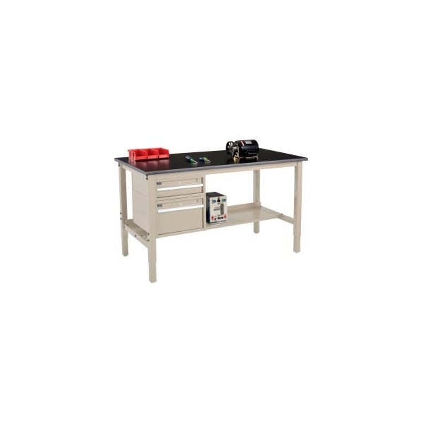 60 x 36 Production Workbench - Phenolic Safety Edge - Drawers Shelf - Tan