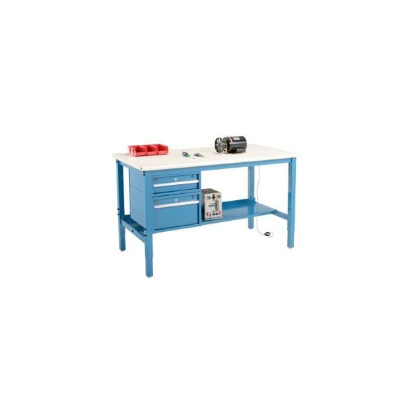 60"W x 36"D Production Workbench - ESD Safety Edge - Drawers Shelf - Blue