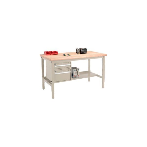 60"W x 36"D Production Workbench - Maple Safety Edge - Drawers Shelf - Tan