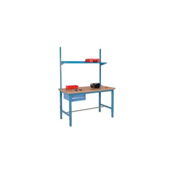 60x30 Production Workbench Shop Top Safety Edge - Drawer, Upright Shelf BL