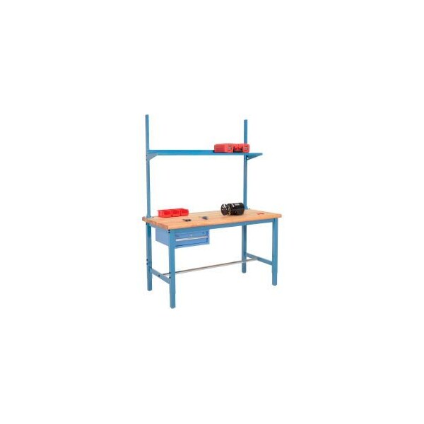60x36 Production Workbench Maple Safety Edge - Drawer, Upright Shelf BL