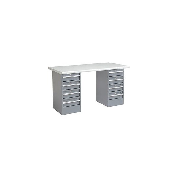 72 x 30 Pedestal Workbench - 8 Drawers, Plastic Laminate Safety Edge - Gray