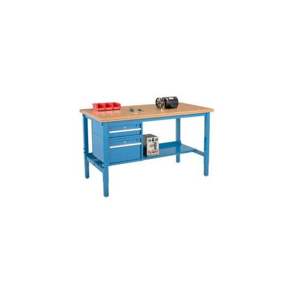 72 x 30 Production Workbench - Shop Top Square Edge - Drawers Shelf - Blue
