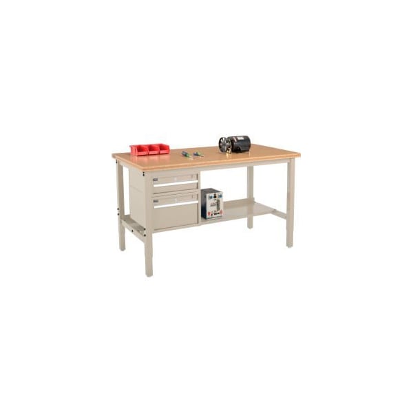 72 x 36 Production Workbench - Shop Top Square Edge - Drawers Shelf - Tan