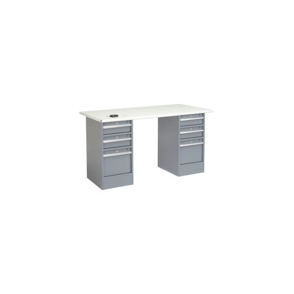 72"W x 30"D Pedestal Workbench - 6 Drawers, ESD Safety Edge - Gray