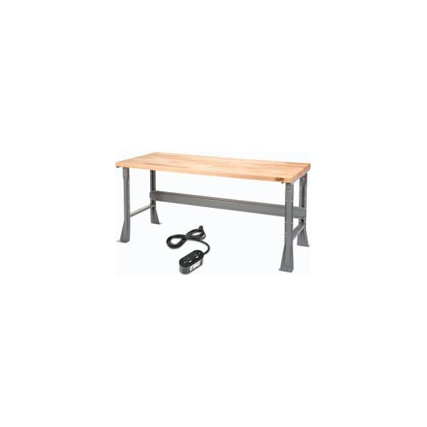 MAPLE-BUTCHER BLOCK TOP WORKBENCH FLARED FIXED LEG A WORKMAN'S DREAM BENCH. THIS SOLID, RUGGED TOP STANDS UP TO CONSTANT, HEAVY POUNDING. HARDWOOD IS KILN DRIED, ELECTRONICALLY GLUED, SANDED TO 1-3/4" THICKNESS AND HAS LAMINATED EDGES. FINISHED WITH A PENETRATING MINERAL OIL FOR A DURABLE HIGH QUALITY APPEARANCE. A TERRIFIC BUY IN EVERY WAY. FINISHED WITH SCRATCH RESISTANT GRAY POWDER COAT. *COMES WITH BONUS OUTLET