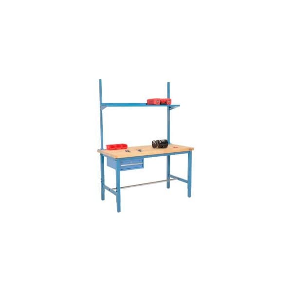 72x30 Production Workbench Birch Square Edge - Drawer, Upright Shelf BL